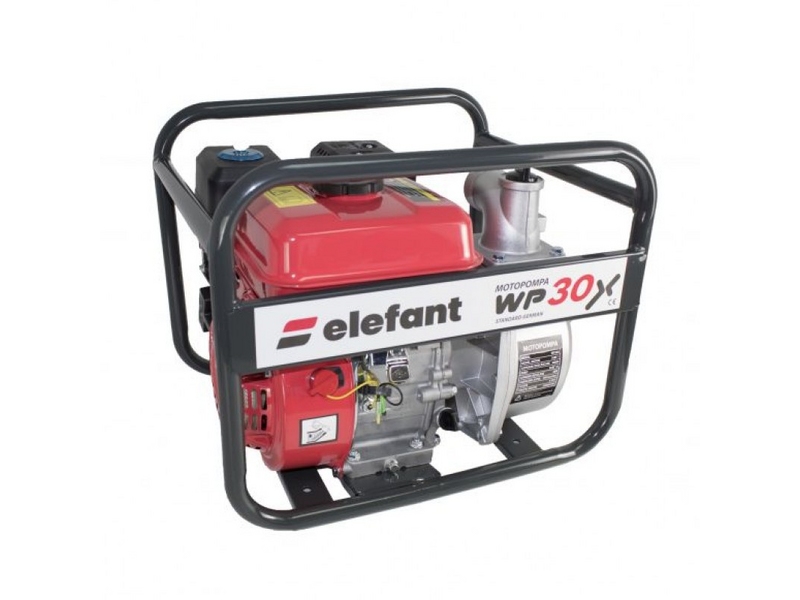 Motopompa pe benzina Elefant WP30X cu motor in 4 timpi ce dezvolta 6,5 Cai Putere. Este o pompa de debit mare, avand caile de intrare/iesire de 2 toli. Setul include si conectiunile pentru furtun impreuna cu coliere. Principiul de functionare presupune amorsarea care se poate efectua prin orificiul de 25 mm la fiecare pornire. Motorul functioneaza in regimul 4 timpi si este dotat cu buton de pornire oprire chiar pe carcasa motorului. Baia de ulei este dotata cu doua joje, de ambele parti pentru acces usor.