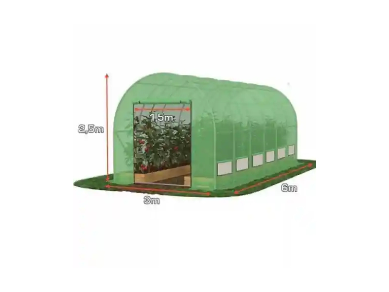 Sera 6x3x2,5 m cu cadru galvanizat la bază, аolie din polietilenă armată 180 g/m², țevi galvanizate 26x0,9 mm. Această seră este ideală pentru înființarea culturilor de primăvară, pentru culturile de vară, toamnă și iarnă.