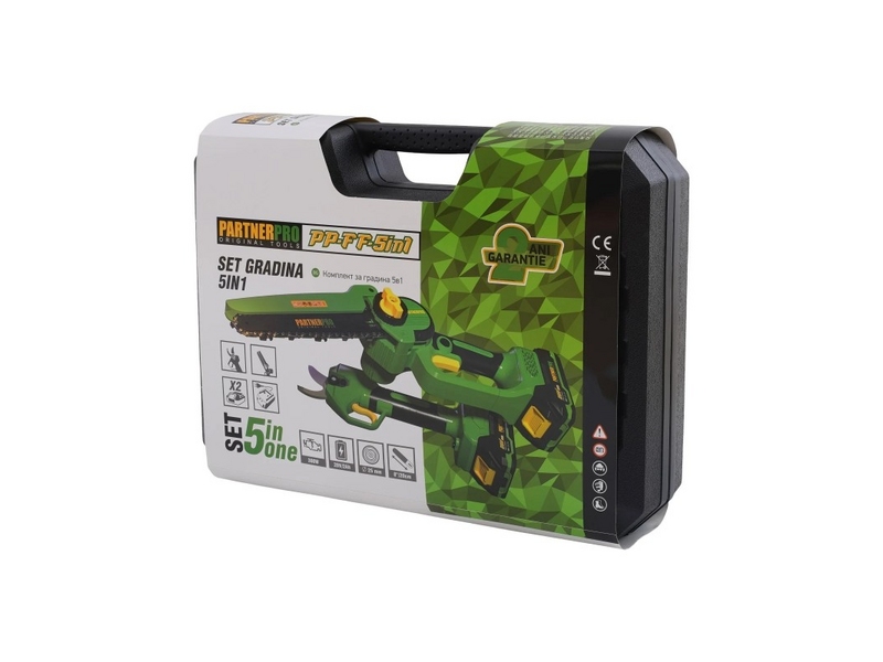 SET FOARFECĂ DE GRĂDINĂ ȘI FIERĂSTRĂU CU LANȚ PE ACUMULATOR PARTNERPRO PP-FF 5 IN 1