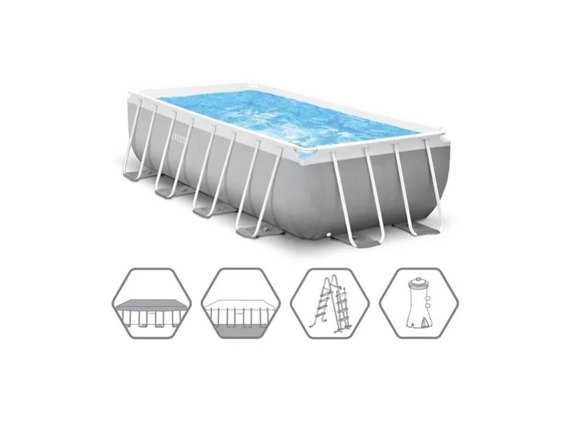 Также прочность бассейна Prism Frame Pool обуславливается его стальным каркасом, благодаря которому бассейн выдерживает большие нагрузки, в нем одновременно могут купаться несколько человек. Не требует подготовки грунта, насыпке песка и т.п., все, что нужно, это плоская, горизонтальная площадка. Процесс сборки бассейна до наполнения водой занимает 45-60 минут