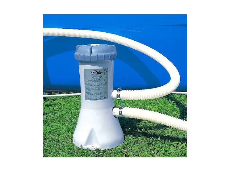 Картриджный насос-фильтр 3 785 л/ч, *Фильтр-насос подключается к штатным отверстиям бассейна при помощи двух гофрированных шлангов. Имеется две независимых помпы с клапаном для спуска воздуха, а также клапан для удаления грязи. *Картридж A для фильтра необходимо менять каждые две недели и промывать его под водой по необходимости.